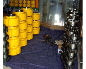 鏈條聯(lián)軸器具有結(jié)構(gòu)簡(jiǎn)單(四個(gè)件組成)、裝拆方便、拆卸時(shí)不用移動(dòng)被聯(lián)接的兩軸、尺寸緊湊、質(zhì)量輕、有 補(bǔ)償能力、對(duì)安裝精度要求不高、工作、壽命較長(zhǎng)、成本較低等優(yōu)點(diǎn)。滾子鏈聯(lián)軸器 可用于紡織、農(nóng)機(jī)、起重運(yùn)輸、工程、礦山、輕工、化工等機(jī)械的軸系傳動(dòng),適用于高溫、潮濕和多塵工況環(huán)境,不適用高速、有劇烈沖擊載荷和傳遞軸向力的場(chǎng)合,鏈條聯(lián)軸器應(yīng)在良好的潤(rùn)滑并有防護(hù)罩的條件下工作。鏈條聯(lián)軸器是利用公用的鏈條,同時(shí)與兩個(gè)齒數(shù)相同的并列鏈輪嚙合,不同結(jié)構(gòu)型式的鏈條聯(lián)軸器主要區(qū)別是采用不同的鏈條,常見(jiàn)的有雙排滾子鏈聯(lián)軸器、單排滾子鏈聯(lián)軸器、齒形鏈聯(lián)軸器、尼龍鏈聯(lián)軸器等。雙排滾子鏈聯(lián)軸器性能優(yōu)于其他結(jié)構(gòu)型式的聯(lián)軸器,為 廣泛采用KC滾子鏈聯(lián)軸器,我國(guó)亦已制訂為 標(biāo)準(zhǔn)GB6069-2002 。