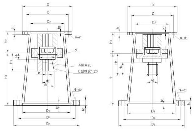 | D | D1 | D2 | h | h1 | n-d1 | D3 | D4 | D5 | h | n-d2 | d1 | b | d2 | b | |||||||